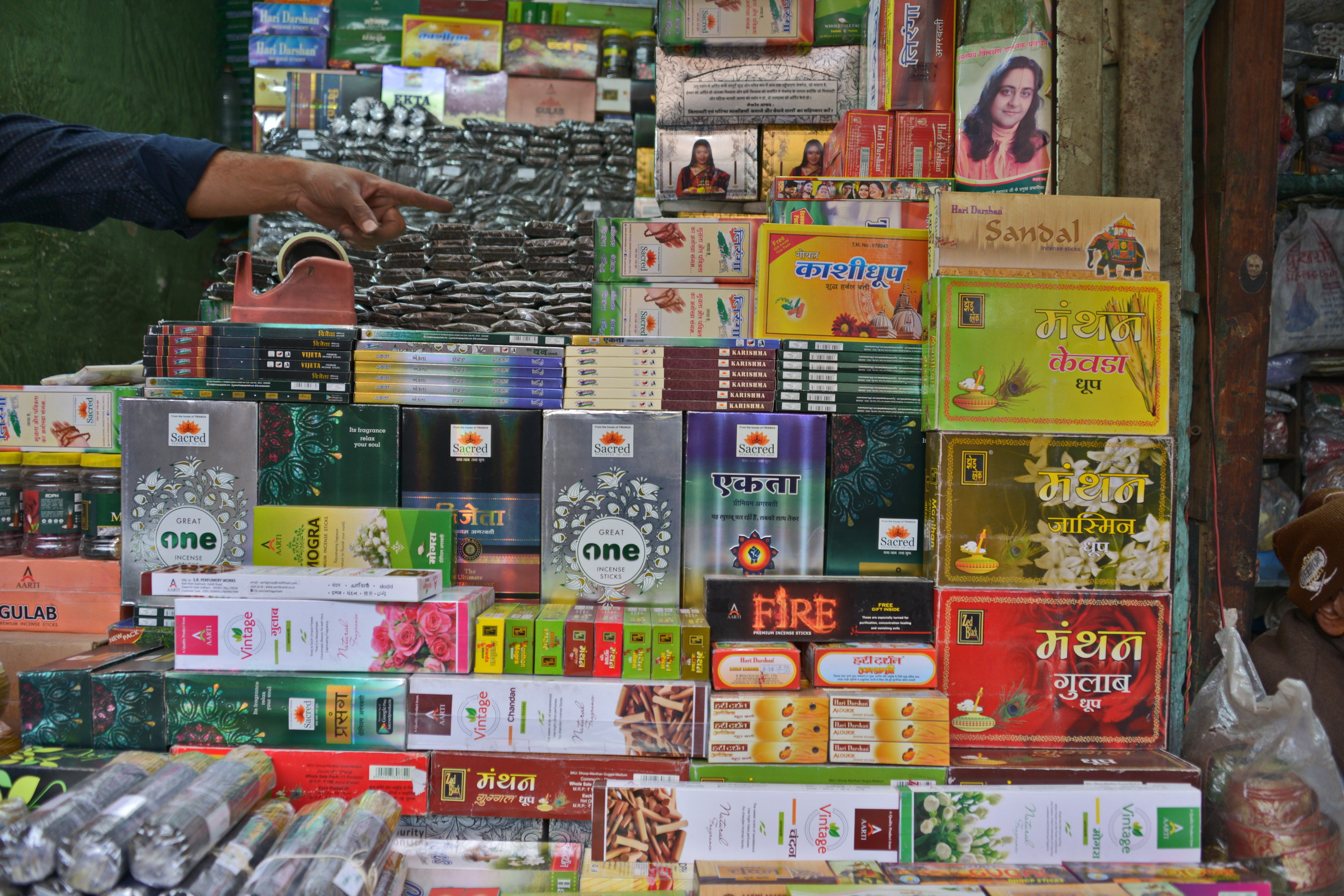 Ele nos leva a uma pequena loja de chás, massalas e incensos, com a melhor variedade da cidade, especialmente o pimentão vermelho de Mathaniya e darjeelings embalados a vácuo.