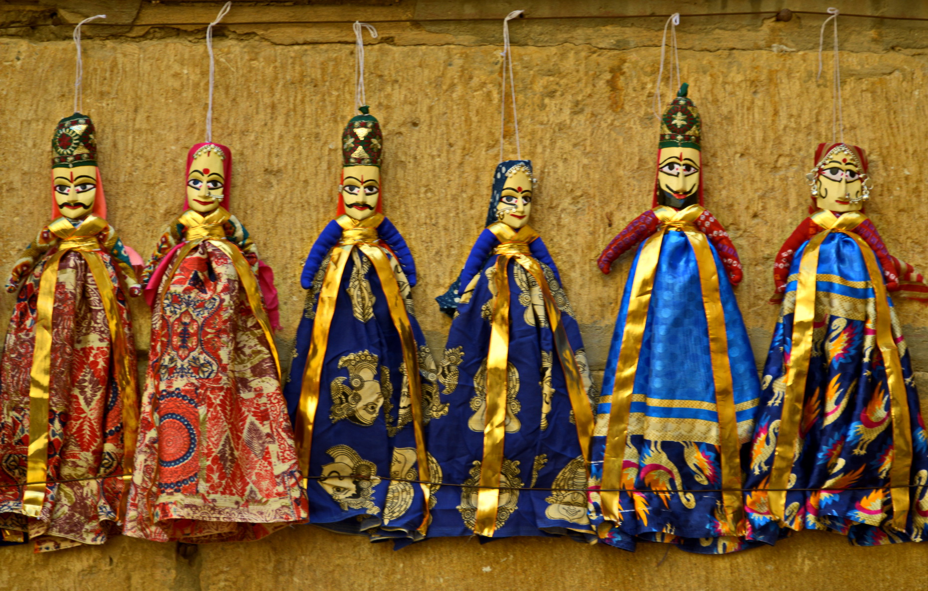 Uma loja de fantoches rajastanis me atrai especialmente. Os bonecos têm grandes olhos e roupas brilhantes, ficam pendurados por cordinhas à espera de alguém para lhes embalar e dar-lhes vida. Recordo-me das apresentações que já assisti e lembro de seus movimentos. Contam histórias dos tempos mogóis, de batalhas, romances, bravura e baladas. Ao fim da caminhada, paramos para beber um fabuloso lassi de manga com gengibre, cremoso e gelado no ponto certo, o melhor que provamos na Índia. Depois de uma hora numa loja de pashminas, encerramos a exploração dos bazares de Jodhpur.