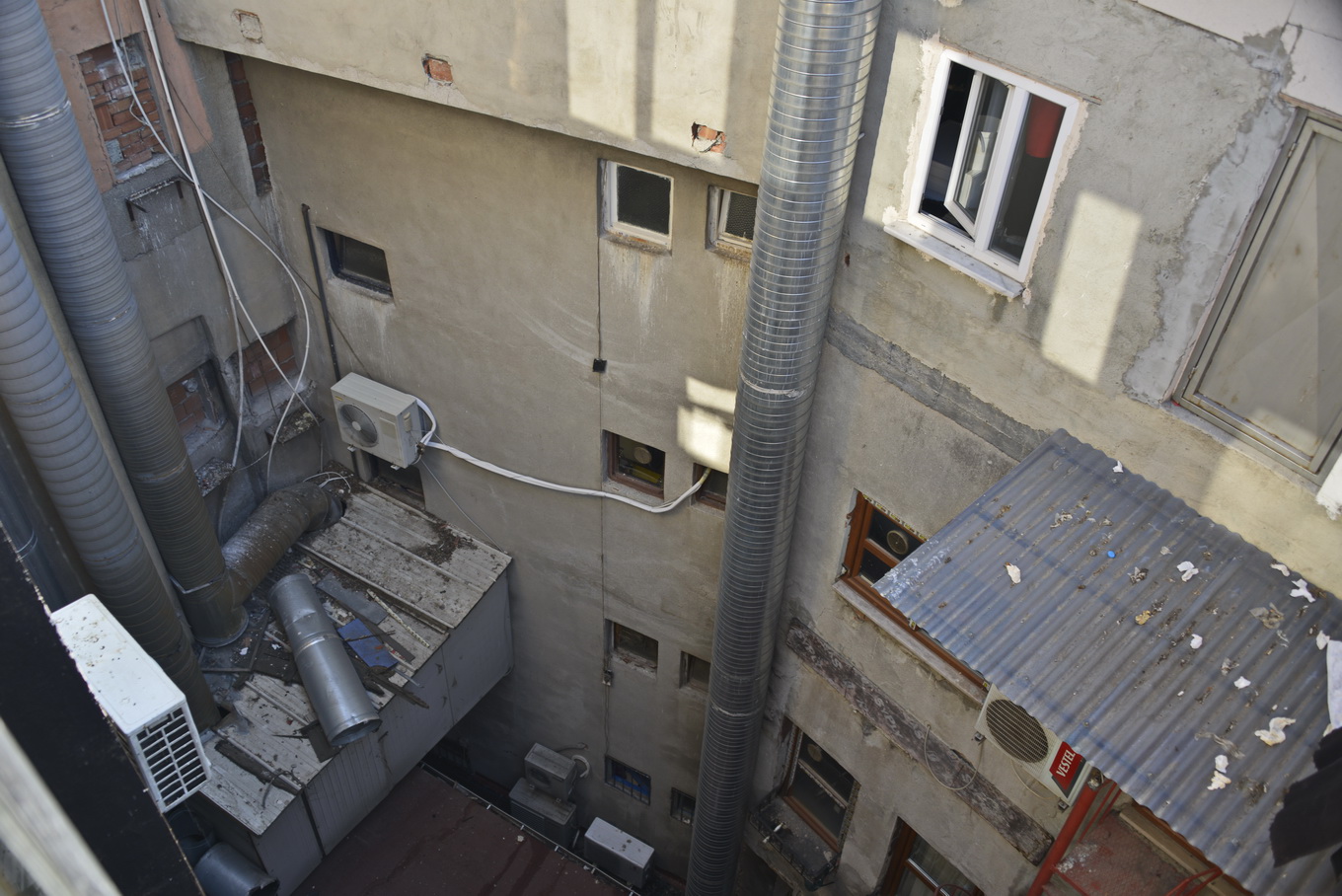 O muezzin encerra o canto e o que avisto pela janela é um mero quadrado de janelas a três metros de distância, do espaço livre encaixotado dentro da edificação em toda a sua altura, destinado a garantir iluminação e ventilação aos quartos, já que não dão para a rua Vejo paredes mal acabadas, tubos, fios, chaminés, parabólicas desgastadas, parapeitos sujos e mal cuidados por onde cômodos mal peneirados por suas cortinas, outros sem elas, me permitem vislumbrar seus interiores sem vida. Alguns parecem escritórios, outros residências. Não curto este voyerismo inadequado e quase me envergonho dele, mas a curiosidade naqueles cômodos é mais forte. Recolho-me, contudo, temendo que um vizinho apareça e perceba minha afronta invasiva, e ele não estaria errado. Prefiro aprofundar-me na preparação do dia em vez de deter-me naquele espaço sem história e sem vida, janelas que sequer uma nesga de rua permitem. Mesmo sendo tão desconcertante o cenário, eu o fotografo com mera intenção de reportagem, de mostrá-lo aqui ao leitor. Enquanto penso nas palavras para descrevê-lo, imagino o que diria um versado em arte arquitetônica diante daquele prisma, mas o estômago se manifesta e demonstra saber que existe algo melhor a aproveitar do que aquela vista.