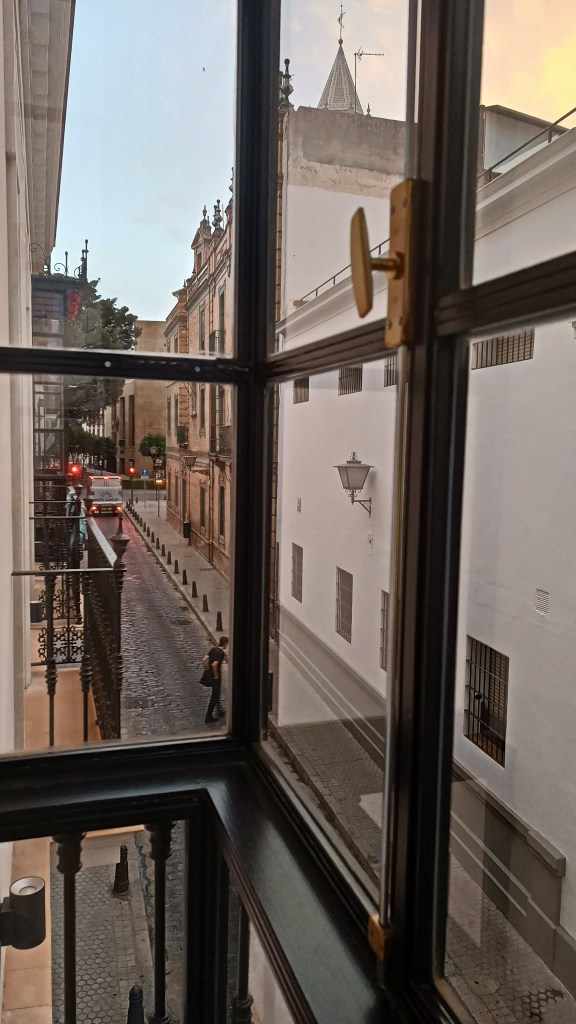 Nosso lugar por duas noites, no Bairro Santa Cruz, nos deixava bem próximos das atrações mais estreladas da cidade, do museu de coisas extraordinárias que há em Sevilha, de seu conjunto icônico e nítido de imponentes edifícios mudéjares, góticos, barrocos, que em maior parte atraem e seduzem o visitante, embora, em primeira hora, nos cativasse o aconchegante quarto do hotel.