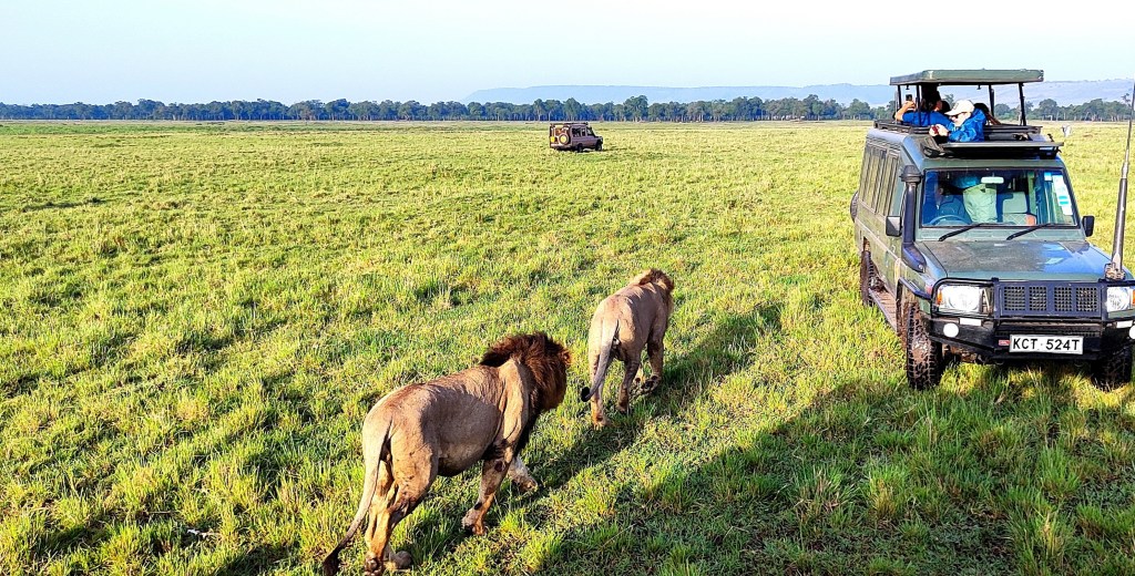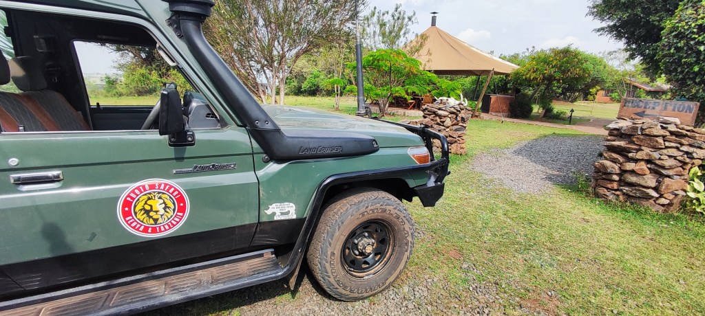 Pronto! Café tomado e lembranças adquiridas, o que queríamos estava lá fora: o safari, ou game drive como costumam tecnicamente denominá-lo. Para ver os cinco grandes: elefante, búfalo, leão, leopardo e rinoceronte, os quais sempre haveria antes a sorte, porque de nós não dependiam os encontros.