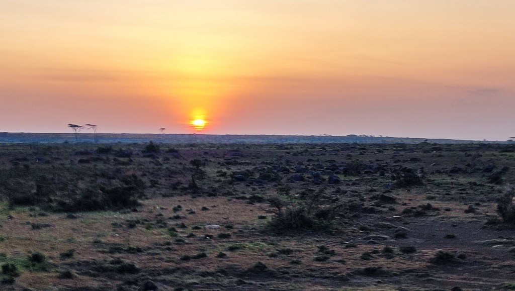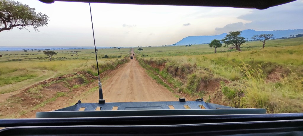 Deixamos o lodge no Mara Triangle em direção ao Masai Mara National Game Reserve com o sol ainda nascendo. Eram 6:45 e ele subia no horizonte em menor velocidade do que o avistava passando à janela do jipe. Em pouco mais de 20 minutos chegamos ao Portão Musiara, com alguém tentando vender um colar ou pulseira, que sempre comprávamos.