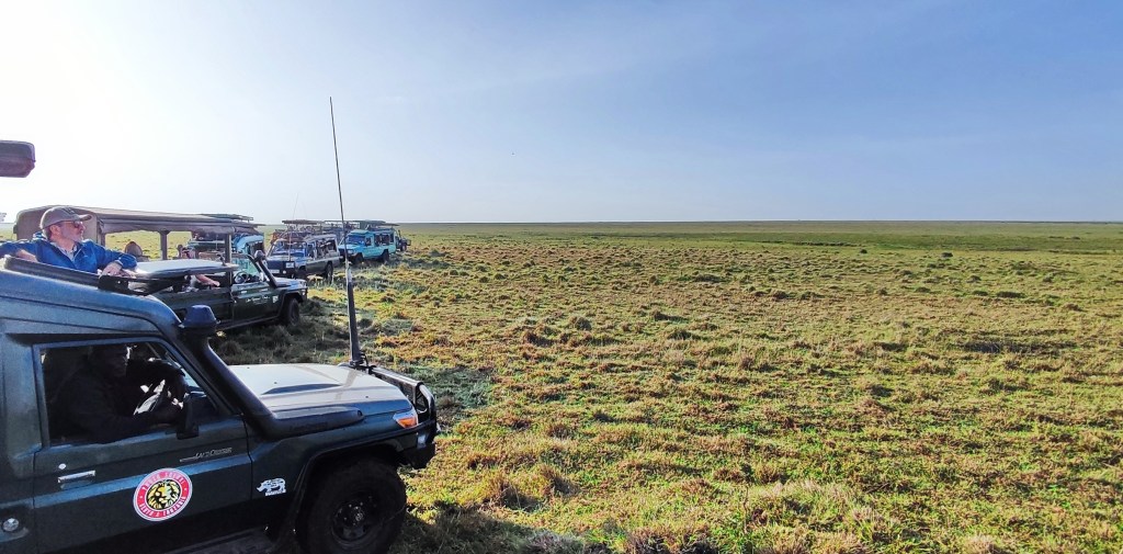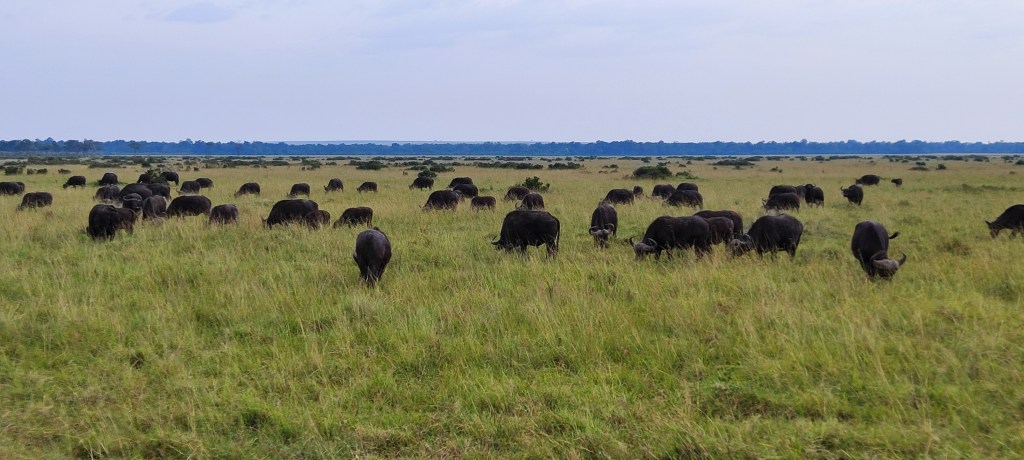 Continuamos na direção do campo de pouso Musiara por um ecossistema em que até um besouro parece essencial. Chegamos a uma pequena aglomeração de jipes e avistamos búfalos e leoas espreitando-os escondidas em moitas. A cena parecia promissora, desenhava-se o ritmo do que todos ali desejavam, sobretudo pela equipe de filmagem de algum Nat Geo num jipe e enorme equipamento filmagem sobre a caçamba de uma picape, esperando a sorte de registrar um ataque dos felinos.