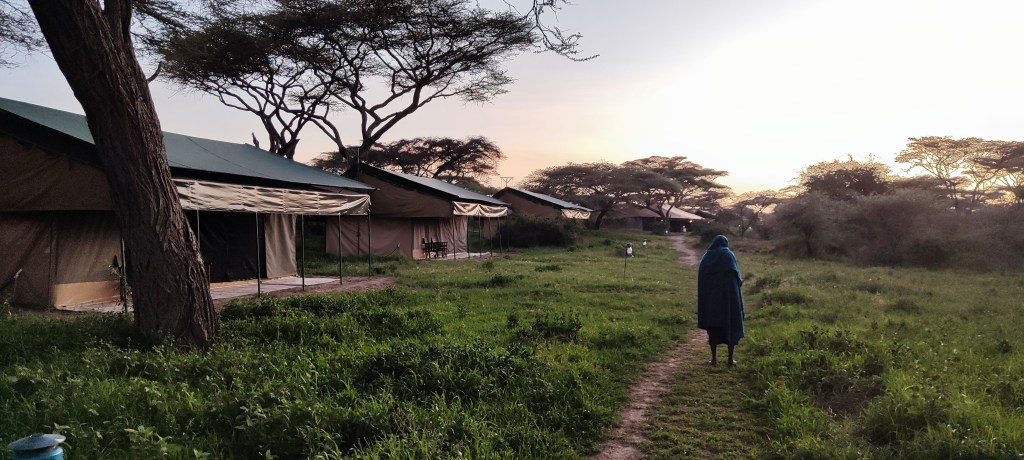 Do Ang’ata Migration Ndutu Camp ao Loduare Gate – o portão de acesso ao Ngorongoro Conservation Area – foram 16 quilômetros de estrada de terra vermelha e trechos de florestas, muito boa viagem. Depois, já dentro da área do parque da cratera, igual distância até o Kudu Lodge & Campsite, onde tivemos nossa última estada na Tanzânia.