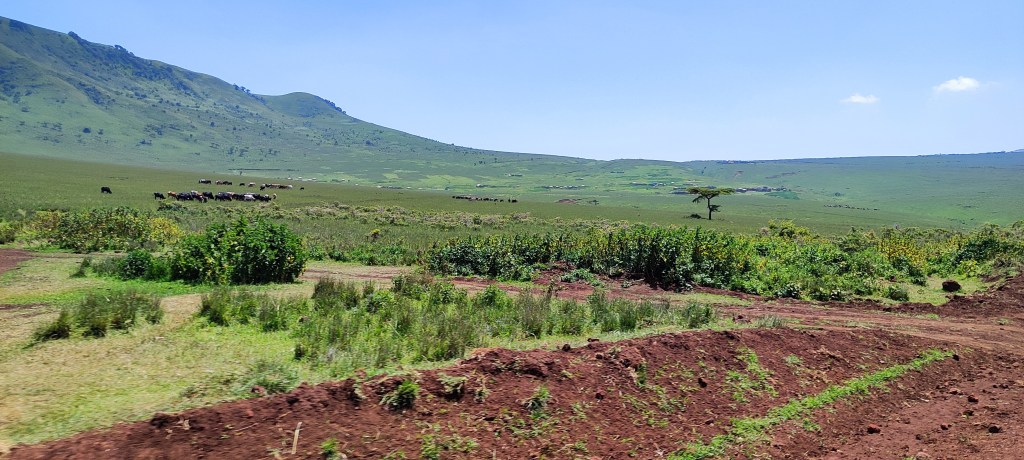O caminho todo foi bonito, mais verde e úmido que os que passáramos, por entre terras dos pastores maasai, grandes rebanhos de gado bovino, onde vivem em seu modo de vida tradicional e genuíno. A certa altura, paramos à beira da estrada de terra para entregarmos a dois meninos duas caixas com lunch boxes não consumidos. Retribuí o discreto sorriso de um deles e lhes acenei à saída.