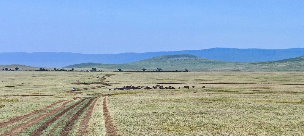 Não havia girafas, e soubemos que simplesmente porque há pouco alimento para elas – árvores – e porque a borda da cratera é muito íngreme para ser descida por aqueles belíssimos animais. E ali, a vida selvagem parece tão acostumada com os humanos e seus jipes que parecem ignorá-los por completo.