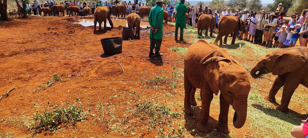 Chegamos em Nairobi, nos hospedamos no mesmo bom hotel, jantamos e nos preparamos emocionalmente para o dia seguinte: uma visita ao Elephant Nursery e ao Giraffe Centre, duas atrações muito mais atraentes para crianças do que para adultos, mas que estes devem comparecer, porque é fundamental sua ajuda para a manutenção deles.
