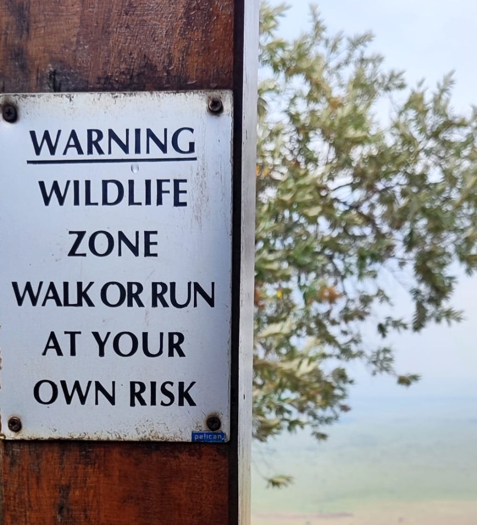 Fosse outro, talvez eu nem falasse, mas se tem uma coisa que eu não aconselho é ignorar um pôr do sol. Seja qual for. Um daqueles, então, de uma surrealidade real, seria um desperdício dos melhores. Como se não bastasse, depois abriu-se um céu de estrelas cintilantes. Do lado de fora, estava eu confortavelmente instalado na cadeira da varanda com os pés ‘pra cima, um olho no céu e outro ao redor. Leio uma placa: “Atenção: Zona de vida selvagem. Caminhe ou corra por sua própria conta e risco”. A mente me dizia “seja forte, fique”, mas não, não fui. Cedi ao medo. Resolvi entrar e me preparar para dormir. E foi até coisa bem expressa, de adormecer logo.
